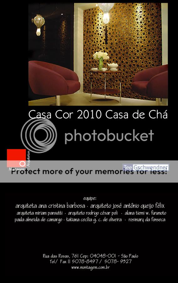 Criação de material gráfico para a Montagem Arquitetos, para a Casa Cor 2010. Este ano, o casal Ana Cristina e José Antônio Queijo foi responsável pelo espaço Casa de Chá - local onde a loja TeeGschwendner se instalou. Vale a visita para conhecer o espaço e tomar um chá bem diferenciado. O evento acontece de 25 de maio a 13 de julho, no jockey club.