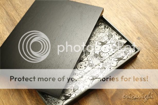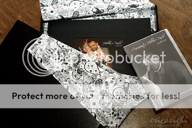 Como finalização foi feito um álbum do tipo fotolivro, como capa dura. O álbum foi entregue em uma caixa de madeira preta folheada com acabamento de tecido cashemere em preto e branco.