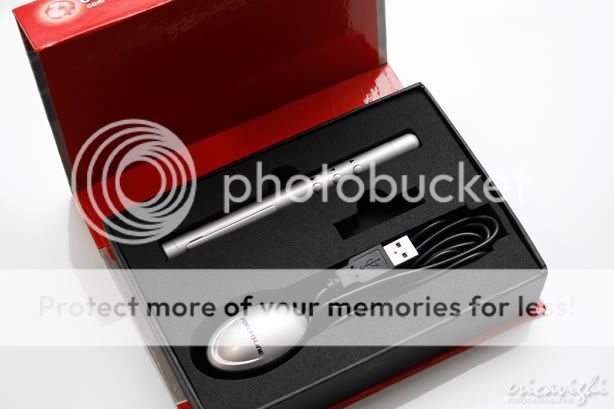 Este é um modelo simples, em forma de caneta, que tem duas funções: a transição dos slides e uma ponteira de laser. Vem na caixa, com a pilha e com o acessório que deve ser ligado via usb ao computador.